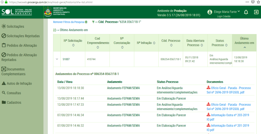 Imagem – Sistema Online de Licenciamento https://secweb.procergs.com.br/sra/logon.xhtml, para leitura dos documentos vinculados ao processo administrativo 6354.0567/18-1 referente ao projeto Mina Guaíba