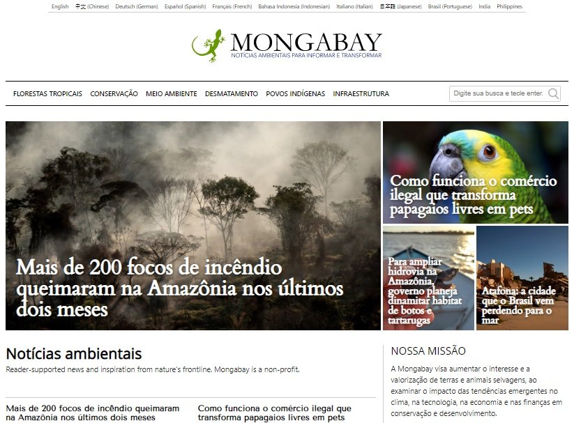 O jornalismo ambiental praticado no Brasil ganhou um reforço internacional. Desde 2019, a agência de notícias Mongabay começou a trabalhar com jornalistas brasileiros para cobrir no país mais megadiverso do planeta pautas sobre florestas tropicais, conservação, desmatamento, povos indígenas e infraestrutura.