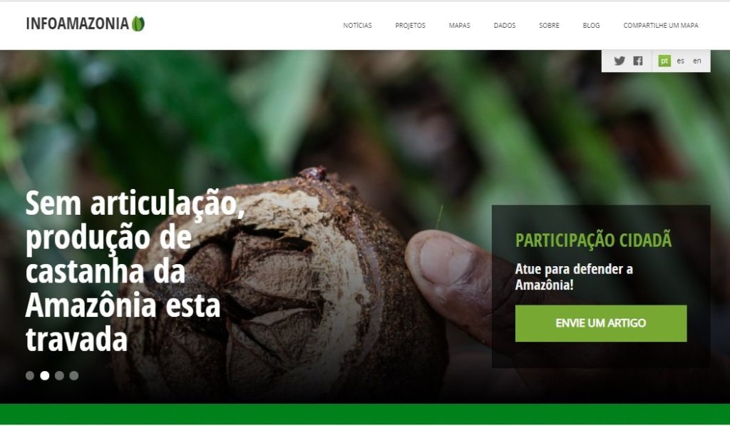 O InfoAmazonia, projeto de jornalismo ambiental liderado por Gustavo Faleiros, começou a publicar no dia 29 de novembro uma série de reportagens sobre os gargalos da bioeconomia. Produzida por Eduardo Geraque, a primeira parte do especial trata da produção de castanha-do-Pará, conhecida no mercado internacional como castanha-do- Brasil (Sem articulação, produção de castanha da Amazônia esta travada | InfoAmazonia).