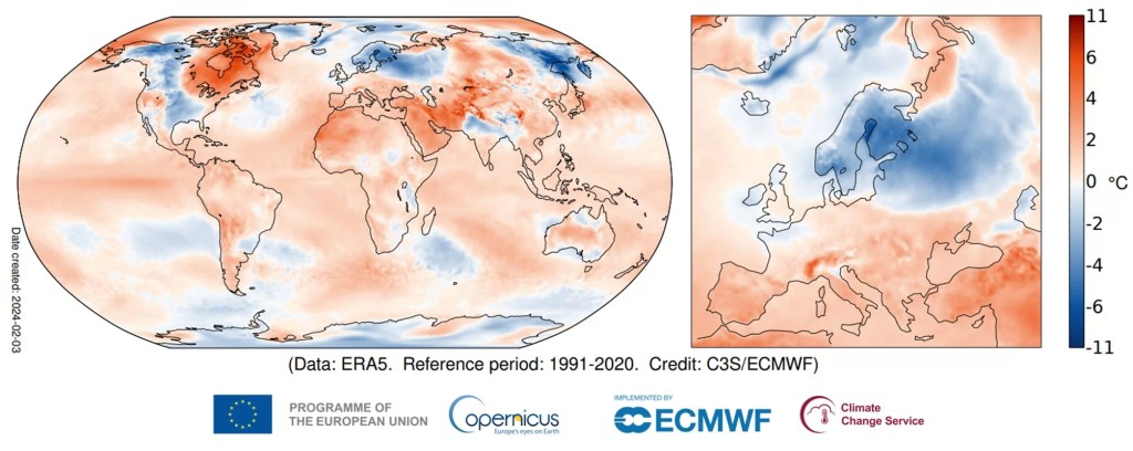 Este ano já detém a marca do janeiro mais quente da história, segundo boletim do Copérnico (C3S), programa da União Europeia (UE) que monitora mudanças climáticas, divulgado nesta quinta-feira (8) e amplamente publicado na imprensa.