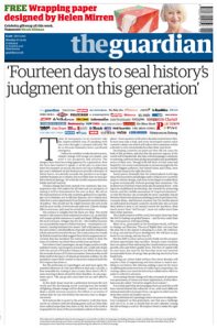 Mesmo com as aspirações já partilhadas em torno da limitação do aquecimento global, Giddens mostra em seu livro a ausência de políticas concretas e de análises bem desenvolvidas, seja em âmbitos nacionais ou internacionais. Na crítica, não poupa os países desenvolvidos, historicamente quem mais contribuiu e dos quais se espera um corte drástico nas emissões de gases nocivos, bem como na promoção de políticas claras de eficiência energética, sustentabilidade e convergência política. Para o autor, por hora as iniciativas mais relevantes têm brotado de ações pessoais e da energia da sociedade civil.