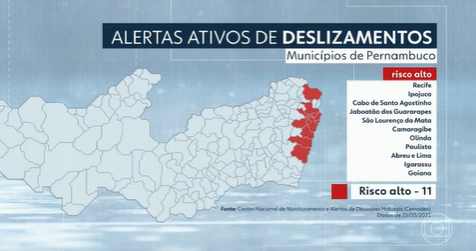 Print de mapa apresentado no telejornal local da TV Globo Nordeste em 25 de maio de 2022